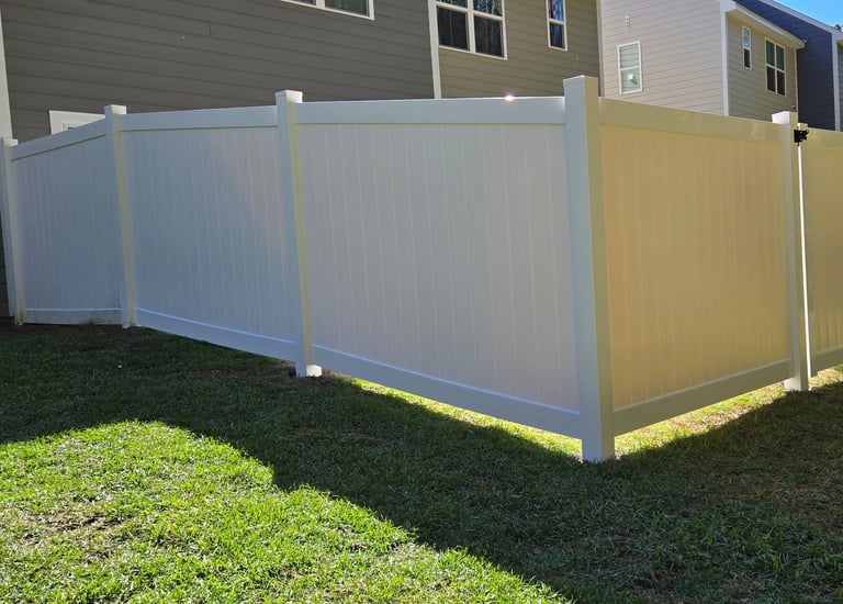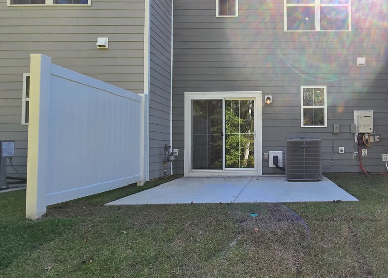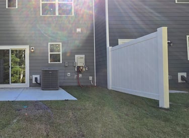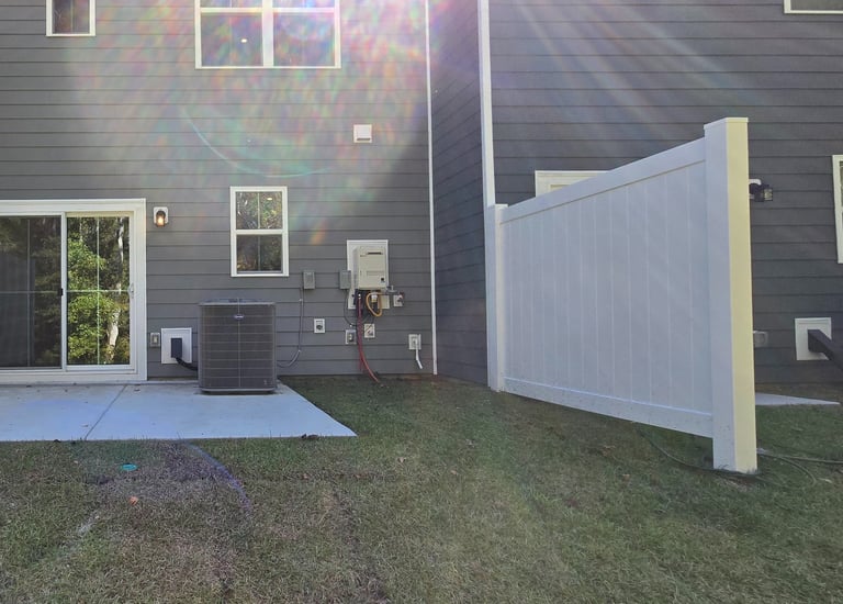 We seamlessly transitioned from the builder's original partitions to the new fence and have the required four-inch ground clearance in the back for drainage as required by the HOA.